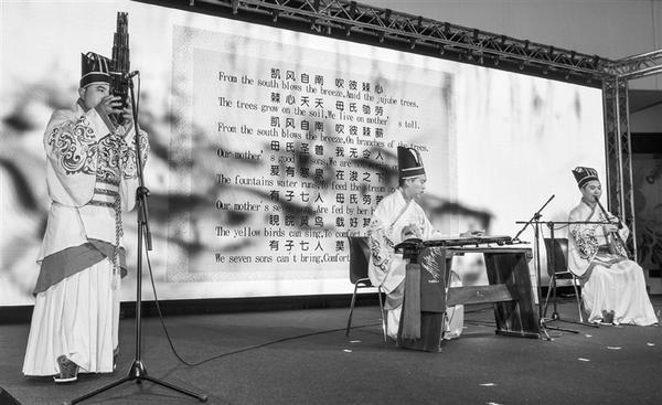 5月6日,演员们在联合国维也纳办事处中文日活动中演奏中国传统琴歌。当日,由中国常驻维也纳联合国代表团举办的“美丽中国,携手世界”主题中文日活动在联合国维也纳办事处中央圆厅开幕。新华社记者 郭晨 摄