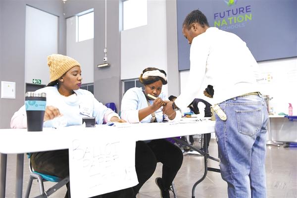 5月8日,在南非约翰内斯堡,工作人员给参加投票的选民指甲涂上颜色。南非8日迎来结束种族隔离政策后的第六次大选。当天,全国约2.3万个投票站从早晨7时到晚上9时向选民开放。投票结束后,计票工作随即展开,预计选举结果将在11日公布。新华社记者 陈诚 摄