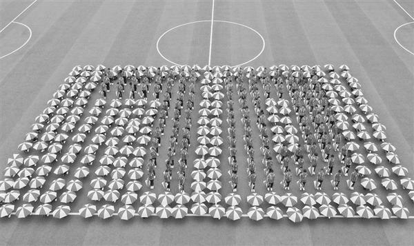 5月11日,扶沟县中小学校足球联赛暨中学生田径运动会在县秋实中学开幕。全县各中小学校的33支足球代表队、22支田径代表队参加比赛。图为县实验小学在开幕式上《幸福花开》团体操中组成“70”造型。