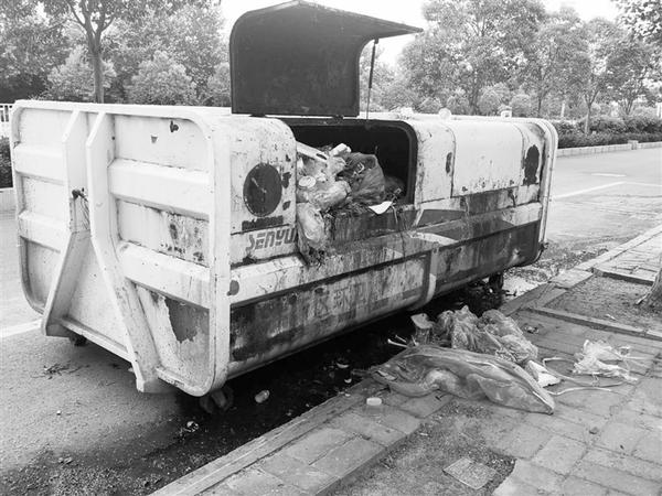 5月10日、12日下午,记者两次来到此处查看垃圾箱清理情况,发现垃圾箱周围依旧污水横流,苍蝇和飞虫嗡嗡乱飞,垃圾依旧散落在外。“我每天上班从这里经过,看到这一片油污、臭水,心情就受影响。气温越来越高,这样的臭味实在让人难以忍受。”路过此处的一位市民表示,垃圾污水已经存在好多天了,不知道为什么没人清理。中心城区正处在“创卫”关键时期,这些垃圾污水太影响道路的卫生和美观。