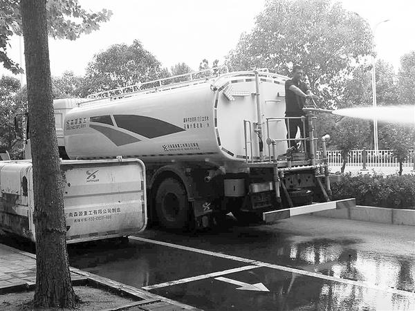 下午3点多,拨打过电话后,记者再次赶赴现场,看到一辆清洗车正在清洗垃圾箱周围的污水,几位环卫工人正在用扫帚刷洗地面。示范区城管局市政中队长张鹏告诉记者,垃圾箱的污水主要来自附近酒店的餐饮垃圾,上午垃圾箱的垃圾已经运走,以后他们将采取措施不让此类情况再发生。②6