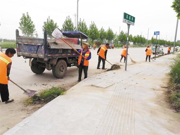 环卫工人正在清扫街道、清运垃圾。