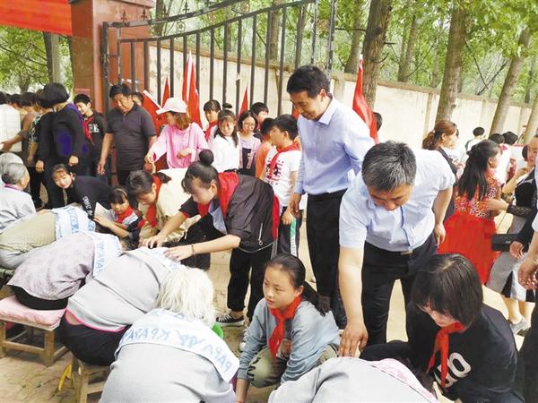 5月12日上午,淮阳县王店乡党委书记徐勇和班子成员一起带领乡中心小学的孩子们到敬老院看望慰问老人,给他们送去慰问品。孩子们还为老人们表演了精彩的文艺节目,并给老人捶背、洗头。