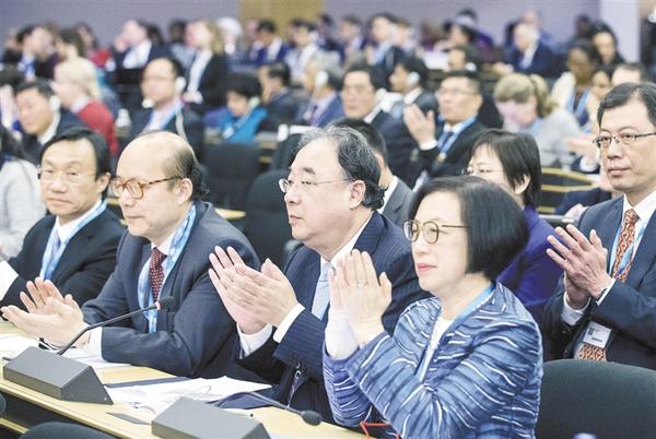 5月20日,在位于瑞士日内瓦的联合国万国宫,中国代表出席世卫大会开幕式。第72届世界卫生大会20日在日内瓦开幕。新华社发