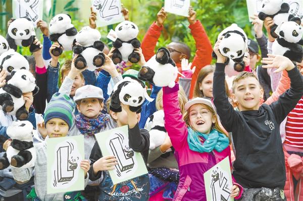 5月20日,在奥地利维也纳,小朋友们在美泉宫动物园欢迎大熊猫“园园”。当日,来自中国的雄性大熊猫“园园”正式亮相奥地利维也纳美泉宫动物园。大熊猫“园园”于4月16日抵达维也纳,一直处于隔离状态。“园园”将与2003年来到美泉宫动物园的雌性大熊猫“阳阳”一起生活。新华社发