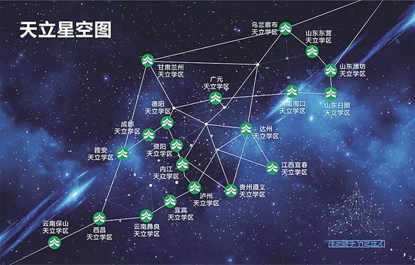 天立教育集团总部位于成都青羊工业区总部基地,现有四川成都、泸州、宜宾、内江、广元、西昌、雅安、达州、资阳,河南周口,山东潍坊、东营、日照,云南保山、彝良,江西宜春,甘肃兰州,贵州遵义,内蒙古乌兰察布等学区(含开学、在建、筹建),涵盖了从幼儿园到高中(K-12)的四个学段,在校生达30000余人。