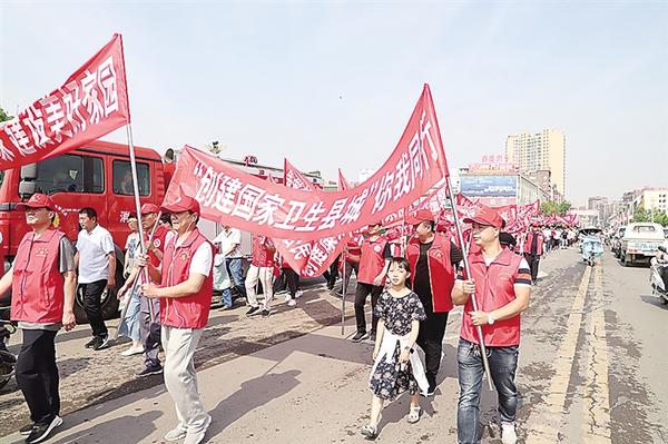 活动现场,万名参会人员在“创建国家卫生县城 建设美丽新郸城”巨型条幅上郑重签名承诺;参会人员随后排成整齐队伍,沿新华路等县城主干道参与“创卫”万人游行活动,倡议全县人民共同参与,汇聚“创卫”磅礴力量。
