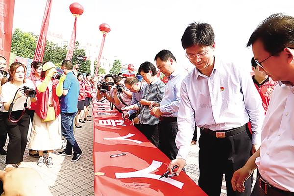 全民“创卫”战正酣,万人签名大誓师。5月25日上午,郸城县举行“创建国家卫生县城 建设美丽新郸城”万人签名誓师大会。会议动员广大群众以主人翁的姿态支持参与“创卫”工作,勠力同心,砥砺前行,确保创建国家卫生县城一举成功,为郸城再添靓丽名片。