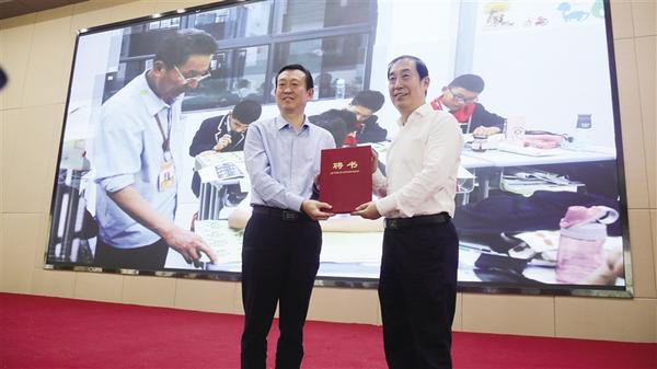 最后,该校董事长刘永文宣布聘请丁谦为该校名誉校长。市教体局党组书记张建梁为丁谦颁发聘书。丁谦将自己的书法作品及书籍赠送给该校。