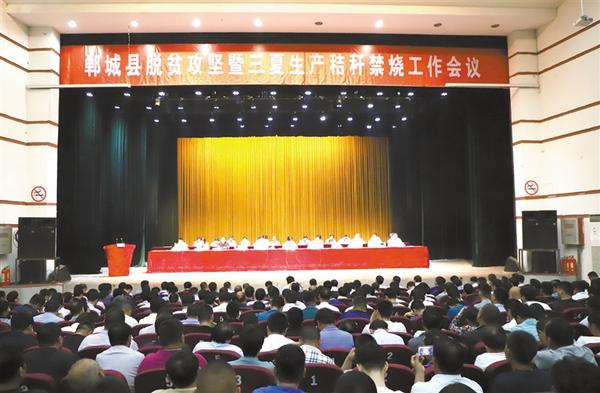 本报讯 (记者 徐松 文/图) 三夏大忙,郸城县委、县政府早谋划、早部署、早启动,动员全县力量投入三夏生产和秸秆禁烧工作。早在5月22日上午,该县就召开脱贫攻坚暨三夏生产秸秆禁烧工作会议(如图),对相关工作进行安排部署。连日来,该县各乡镇尽心尽责,确保三夏生产和秸秆禁烧工作稳步推进。