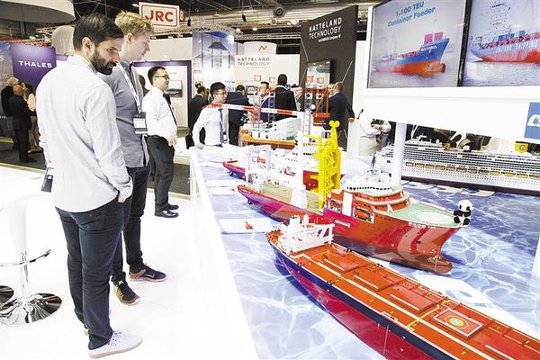 6月4日,在挪威首都奥斯陆附近的挪威会展中心,人们参观中国船舶工业集团有限公司(中船集团)的展位。新华社发