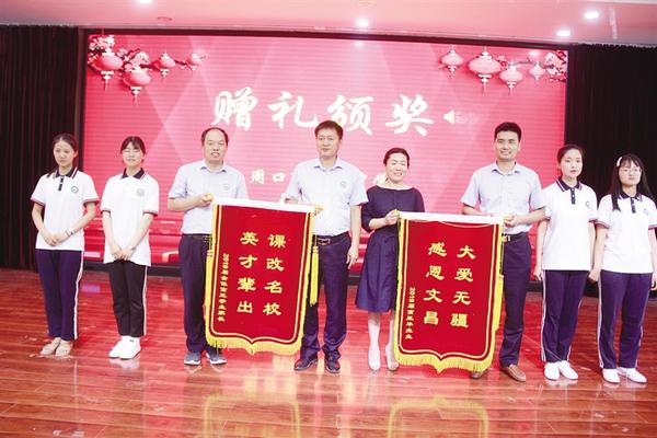毕业典礼上,高三学生家长为感谢学校对孩子的培养,以及教师三年的辛勤付出,制作了多面锦旗赠予学校,表达感恩之情。