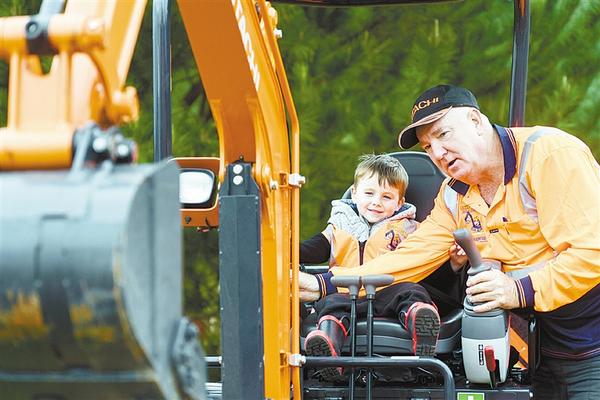 6月12日,在新西兰汉密尔顿举行的第51届国际农业博览会上,一名男孩参观挖掘机。