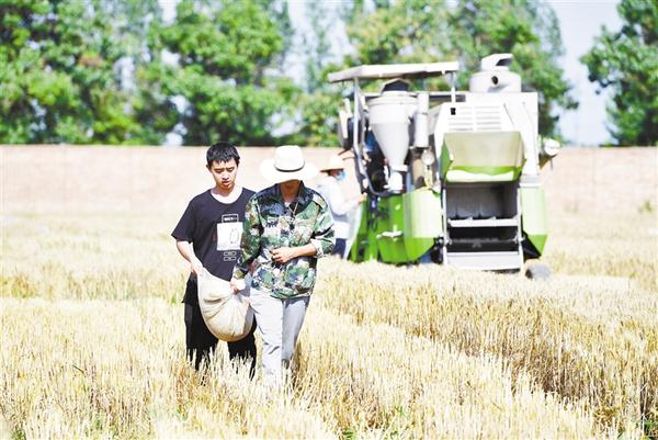 6月13日,西北农林科技大学学生在试验田里收集小麦种子。 每年三夏期间,在位于陕西杨凌的西北农林科技大学,全校各个院系的大一学生都要与老师一起走进学校的试验田,进行三夏生产实践和农业科研实习。这项活动始于建校之初,从学校农学类专业的学生开始,逐步覆盖到全体学生,如今已成为学校延续80多年的教学传统。 今年夏天,近5000名西北农林科技大学大一学生顶着烈日,分批对小麦进行收割、脱粒,并筛选、记录实验材料,亲身体会在田间地头劳作的辛劳与快乐。 新华社记者 邵瑞 摄