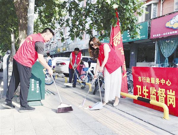 6月15日是星期六,早上7时,周口市行政服务中心(公共资源交易中心)“创卫”执勤人员在监督岗打扫卫生。“创卫”工作开展以来,周口市行政服务中心领导班子高度重视,以上率下,全员参与,全力以赴打赢“创卫”攻坚战,多次受到市“五城联创”指挥部综合办公室的表扬。记者 卢好亮 摄