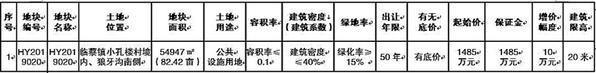 备注:1.具体建设方案须报规划部门批准后实施,土地出让合同签订后,12个月内必须开工建设,工期30个月,土地成交价款需在土地出让合同签订后2个月内缴清,交地时间6个月内。2.建筑高度:建筑物限高20米,构筑物限高40米。3.具体以规划部门出具的规划指标为准。