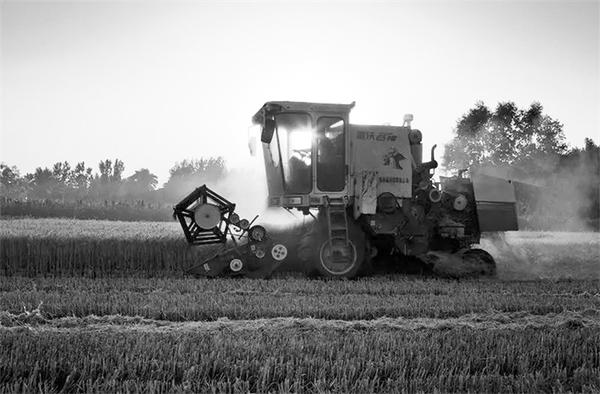 田野深处,大型联合收割机像一艘艘战舰游弋于滚滚麦浪中,大口大口地吞噬着麦穗,吐出粒粒圆鼓鼓的麦子儿。瞬间,浩浩荡荡的麦香味混合着农民们的欢笑声在空气中舒展、扩散、飞舞、升腾。