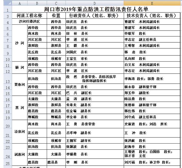 附件:周口市2019年重点防洪工程防汛责任人名单