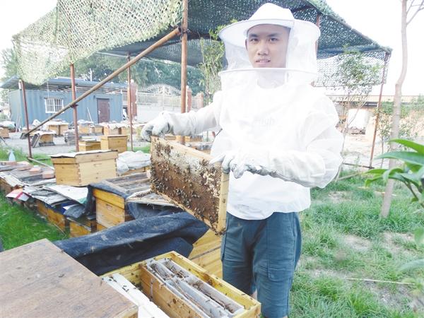6月24日,沈丘县付井镇九里村的退伍军人苏尚方,正小心翼翼地从蜂箱里取出蜂蜜板,准备采收蜂蜜。“我养了120多箱蜜蜂,年产蜂蜜3000多公斤,经济收入十分可观。”苏尚方说,他专门成立了苏家养蜂专业合作社,带领当地贫困户一起脱贫致富。谢辛凌 摄