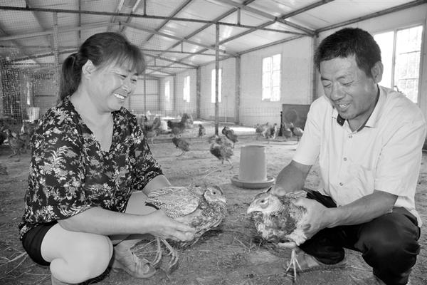 6月23日,平店乡半河桥村张保安、王够夫妇正在查看喂养的七彩野鸡。近年来,商水县各级党委和政府大力发展特色养殖,加快群众脱贫致富步伐,助力乡村振兴。