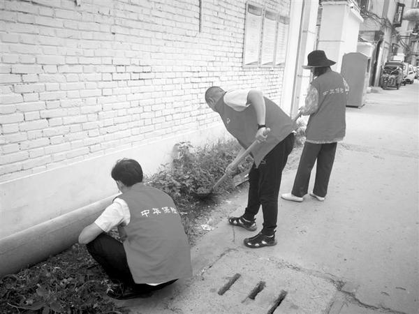 中华联合财产保险股份有限公司周口中心支公司高度重视“创卫”工作,每天由一名班子成员带队,带领10余名志愿者,到分包的车站社区打扫卫生,清理家属院内的生活垃圾、小广告等。同时,加大投入力度,在分包社区内粉刷墙壁、罩白楼道、添置垃圾桶等。目前,车站社区面貌焕然一新,受到居民好评。图为6月24日,该公司志愿者在分包社区小巷内除草。