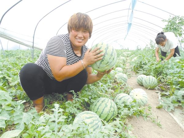 日前,沈丘县周营镇一大棚生态西瓜种植基地内,村民正在采摘搬运西瓜。近年来,在推进产业脱贫过程中,该镇积极调整农业产业结构,规模有序流转土地,科学种植生态瓜果。目前,大棚生态西瓜种植已成为带动农民增收致富的“甜蜜产业”。