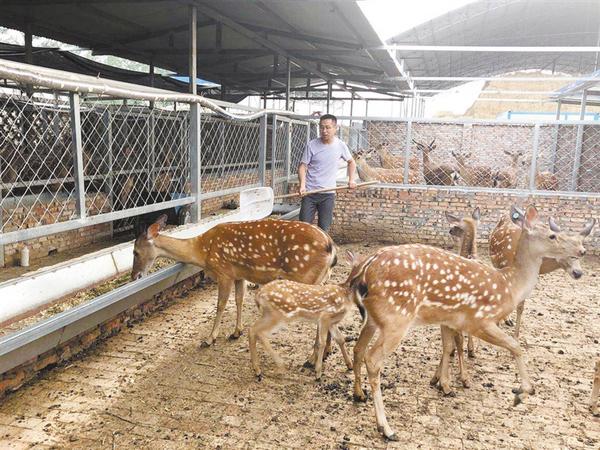 在沈丘县卞路口乡赵庄村,返乡大学生赵沛阳从2018年开始学习梅花鹿饲养技术,并投资100多万元建起养殖场,发展特色养殖业,收益可观。在养鹿过程中,赵沛阳优先聘用周边贫困群众到养殖场工作,不仅给他们发工资,还教给他们养殖技术,帮助贫困群众脱贫致富。记者 韦伟 摄
