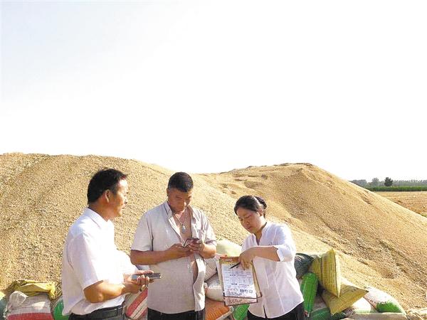 鹿邑农商银行客户经理向当地收粮大户营销“金燕收粮贷”。谢露霜 摄