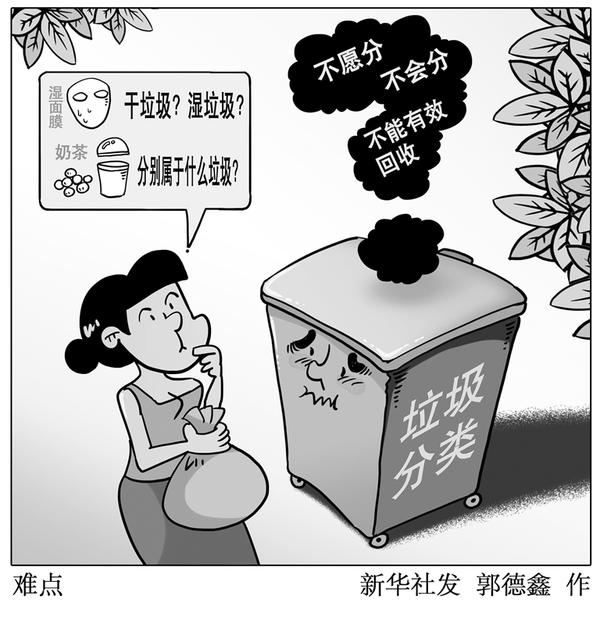 近日,垃圾分类成为社会热点话题。在我国十几年的推行过程中,不愿分、不会分、不能有效回收等问题让垃圾分类难以真正落地。新华社发 郭德鑫 作
