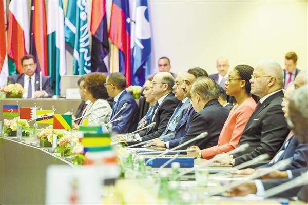 这是7月2日在奥地利维也纳拍摄的石油输出国组织(欧佩克)和非欧佩克产油国部长级会议现场。