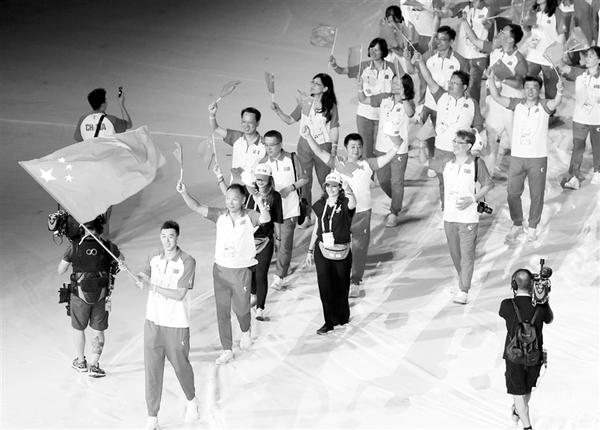 7月3日,中国大学生体育代表团在开幕式上入场。