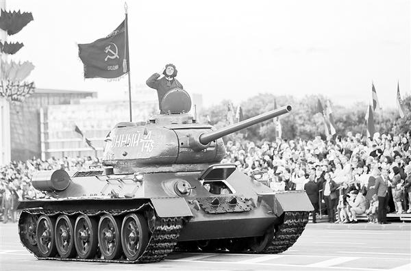 7月3日,在白俄罗斯首都明斯克,T-34坦克参加独立日阅兵式。