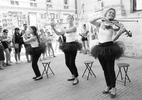 7月8日,在法国阿维尼翁,演员在街头向观众推介其主演的音乐剧。第73届阿维尼翁戏剧节7月4日开幕。参演剧目的主创盛装走上大街小巷,向路人不遗余力推介作品,吸引他们前来观看,成为戏剧节期间一道独特的风景。新华社记者 高静 摄