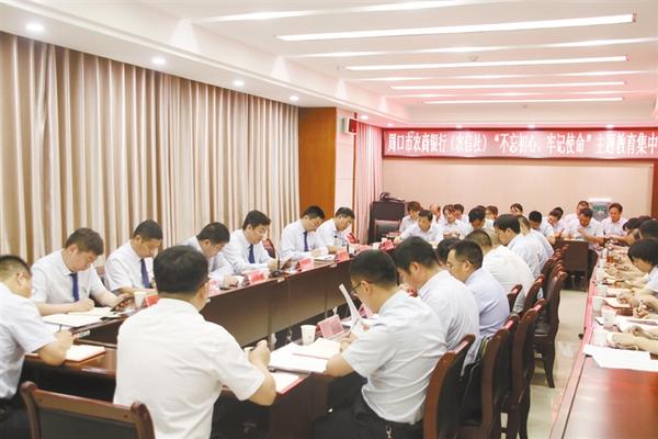 本报讯 (记者 张艳丽 通讯员 娄庆波) 6月24日下午,全市农商银行(农信社)“不忘初心、牢记使命”主题教育工作会议在周口农商银行举行。市农信办党组书记,周口农商银行党委书记、董事长徐晓峰出席会议并讲话。