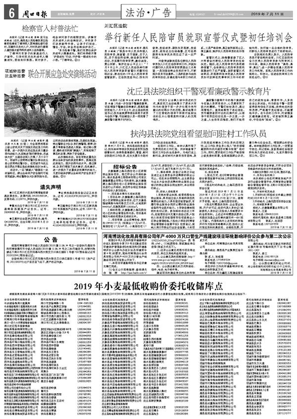 根据国家发展改革委等六部门《关于印发小麦和稻谷最低收购价执行预案的通知》(国粮发〔2018〕99号)的精神,国家在河南省继续实行小麦最低收购价政策。现将周口市确定的小麦最低收购价收储库点公告如下: