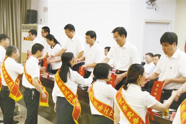 会上,县委常委、县委办公室主任邹松宣读了《中共淮阳县委关于表彰先进党组织、优秀共产党员和优秀党务工作者的决定》。与会领导为受表彰的先进党组织、优秀共产党员、优秀党务工作者进行了颁奖(如图)。②9