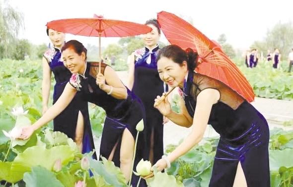 接天莲叶无穷碧,映日荷花别样红。近日,淮阳龙湖荷花苑里的荷花竞相绽放,花香四溢,吸引众多市民前来观赏。 记者 侯俊豫 通讯员 陈颖 摄