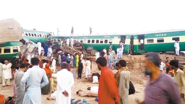 7月11日,在巴基斯坦拉希姆亚尔汗,人们聚集在事故现场。据巴基斯坦媒体11日报道,一列客运列车当天上午在该国东部城市拉希姆亚尔汗与一列货运列车相撞,已造成至少13人死亡、超过70人受伤。新华社发