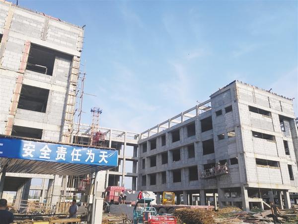 当日,记者在盛和小学施工现场看到,目前,综合楼及4栋教学楼都已封顶,现正在进行内外墙粉刷工作(如图)。同时,体育看台、足球场、篮球场、给排水系统及大门、室外工程均在同步施工中,预计8月中上旬可全部完工。