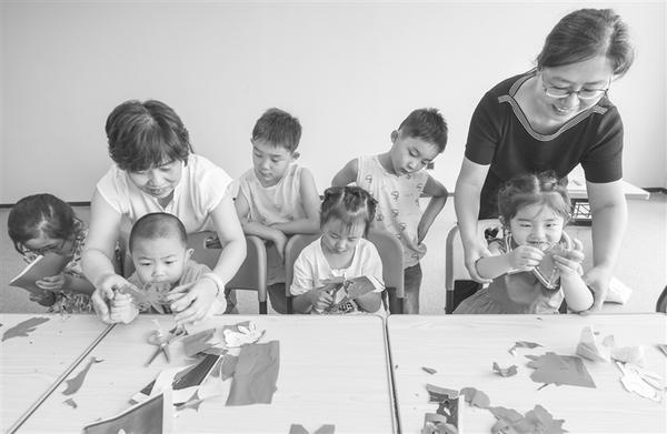 7月16日,香河县民间艺人指导孩子们学习剪纸。暑假期间,河北省香河县文化部门组织民间艺人向孩子们义务传授剪纸技艺,让孩子们感受传统文化的魅力,乐享假期生活。新华社记者 李晓果 摄