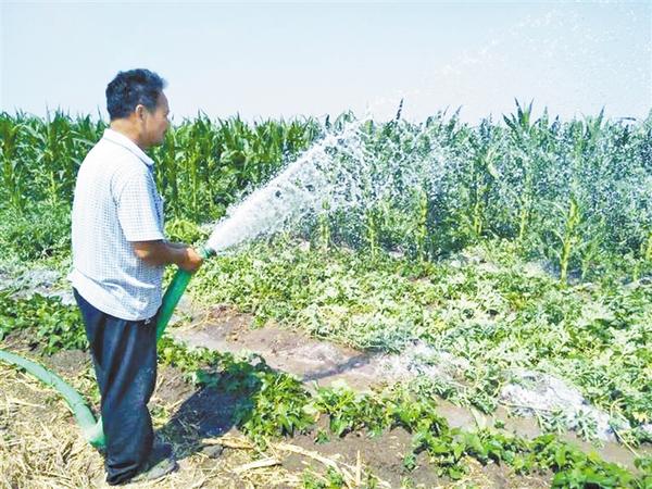 连日来,由于气温持续走高,农田土壤失墒严重。时下,正是夏田管理的关键时期,沈丘县引导农民及时浇灌、科学施肥、预防虫害等,确保秋粮丰产丰收。图为赵古台村农民正在进行抗旱保秋作业。
