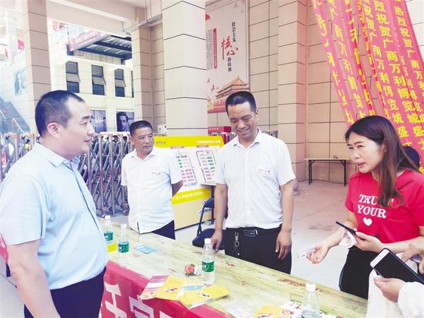 7月13日,淮阳联社工作人员利用淮阳县广商·万利博览城开业之机,现场营销“金燕e贷”。李文 摄