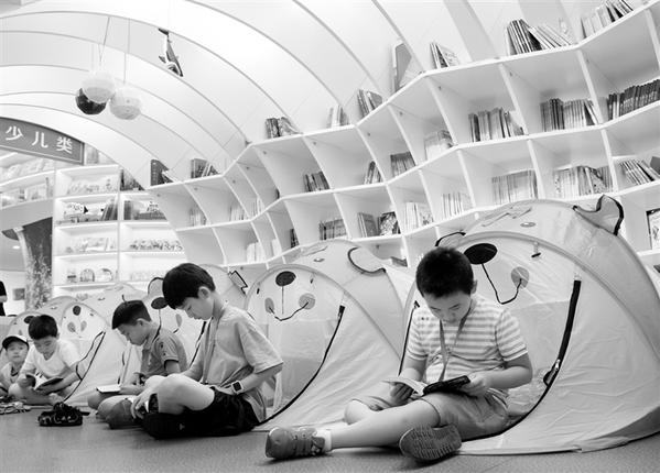 暑假期间,青岛栈桥书店举行夜宿书店活动,邀请小读者们晚间走进书店亲近书籍,并通过睡前读书会、好书分享、枕书共眠等形式,培养孩子们良好的睡前阅读习惯,爱读书、读好书。新华社发