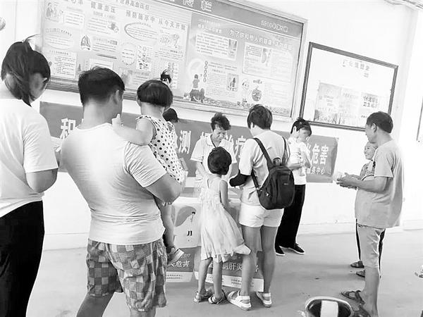 7月28日是世界肝炎日。当天,川汇区荷花社区卫生服务中心在预防接种门诊前开展宣传活动,通过发放宣传资料、开展现场咨询等形式,大力宣传肝炎防治知识,受到市民的一致好评。 记者 史书杰 摄