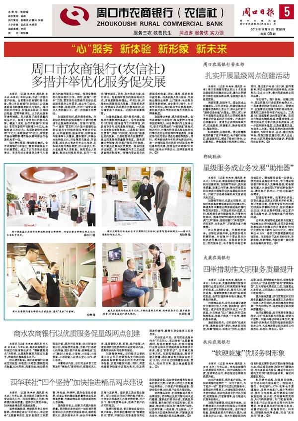 本报讯 (记者 张艳丽 通讯员 汪倩) 周口农商银行营业部从6月初启动星级网点创建活动以来,着力从软硬件方面打造服务新品牌,全面提升网点经营质效。