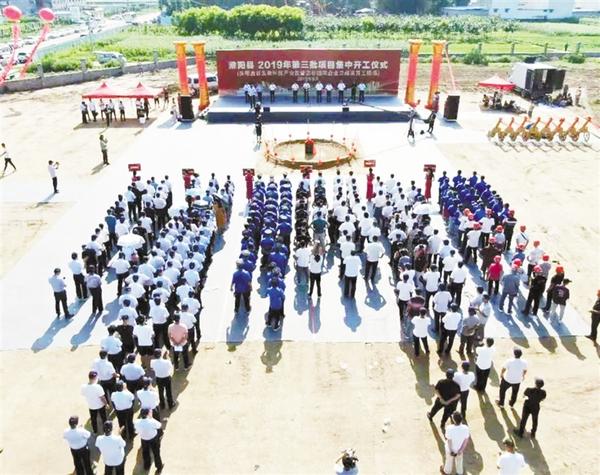本报讯 (记者 侯俊豫 通讯员 张长银 文/图) 8月8日上午,淮阳县在鑫谷生物科技产业园项目建设工地举行2019年第三批项目集中开工仪式(如图)。县领导马明超、王毅、苏中林、马自成、董鸿、李祥生、邹松、朱希炎、李凤丽、张健及鑫谷生物科技董事长郭彦超参加开工仪式。