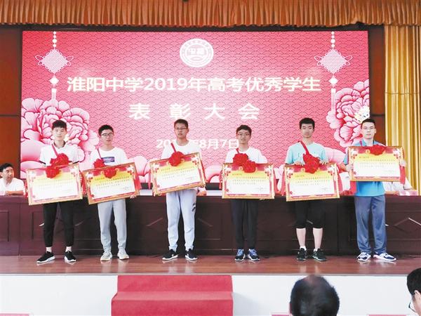 本报讯 (记者 侯俊豫 通讯员 楚士杰 贾晗 文/图) 8月7日上午,淮阳中学举行2019年高考优秀学生表彰大会。副县长王汝凌、县教体局局长王力、淮阳中学校长高远征等为今年考入北京大学和清华大学的李申申、马超凡、魏月磊、赵宇博、范逍宇、张广阔6人颁发奖状(如图)。