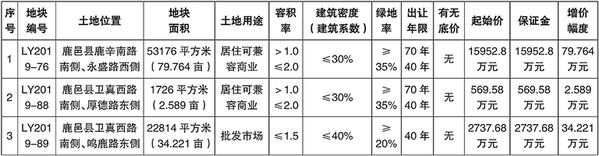 挂牌报价时间为:LY2019-76地块: 2019年9月6日9时至 2019年9月16日15时。LY2019-88地块: 2019年9月6日9时至 2019年9月16日15时10分。LY2019-89地块: 2019年9月6日9时至 2019年9月16日15时20分。
