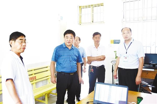 8月9日上午,郸城第三医疗健康服务集团县第二人民医院院长晋继忠、副院长黄卫华,带领相关科室负责人到城郊乡卫生院及屈庄、张庄、王楼等行政村卫生所检查医共体建设。他们查看了门诊、住院患者就诊、用药、管理情况,以及环境卫生、健康宣教展板设置等,提出了指导意见,并要求医务人员按章操作,遵守医疗行为规范,切实做好基层医疗保障工作。记者 徐松 通讯员 张海鹰 摄