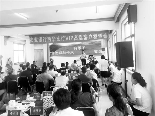 为提高服务质量,普及客户的金融法律知识,8月11日,农行西华支行举办主题为“大行德广、财富尊享”的贵宾客户答谢活动。此次活动邀请了专业律师为客户讲解财富传承与税务方面的法律知识。活动现场,客户积极主动与律师互动,现场气氛十分热烈。客户纷纷表示,通过参与活动,不仅学到丰富的金融专业知识,更为将来的事业发展和家庭财务管理奠定了基础。